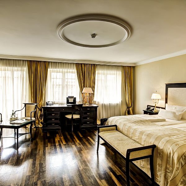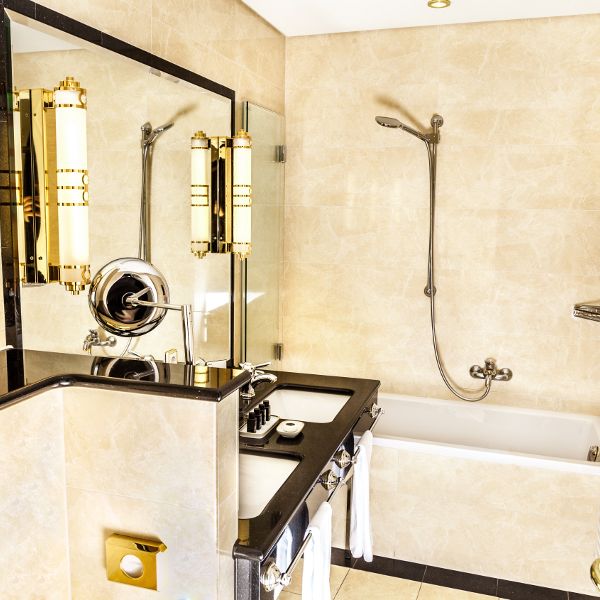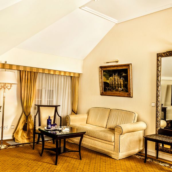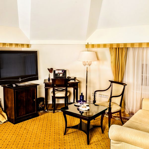 Approximately 35m²- in the historical Dresden design with combined living and sleeping areas and a bathroom made from Italian marble with a bathtub, hairdryer, bathrobe and slippers. The junior suite is equipped with air conditioning, a safe, a desk, parquet or carpeted floors and TV / radio.