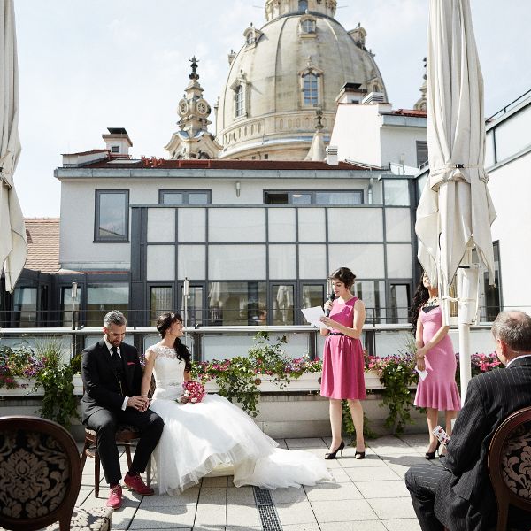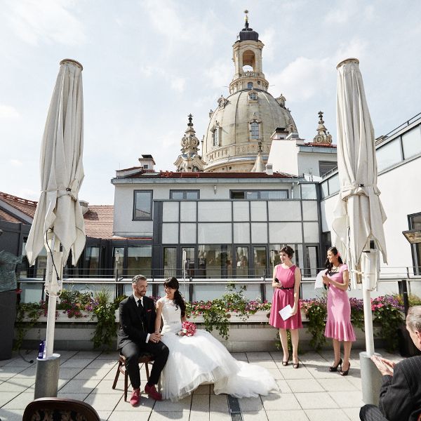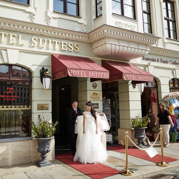 Having a wedding is having a dream come true. A day in the life of lovers, it is more than just the marriage of two people - it is fusion of two souls before the eyes of the world. On this day of committing to belong together, the idea of a perfect wedding day is also fused to a shared stage of togetherness. The magical Suitess in the heart of Dresden with its gold-gleaming and glamorous but still cosy family rooms is just the right place for such an occasion. The team at the Restaurant Moritz will take full care of the palate and the rooms of the Suitess provide the perfect ambience for the main events: wedding ceremony on the roof garden with a spectacular view of the dome of the Frauenkirche, then dinner in the heart of our "Event Room” on the first floor and finally an exuberant conclusion to the evening in the Gin House - our bar downstairs. And of course you can spend the wedding night in one of the enchanting suites or rooms in our Hotel Suitess.